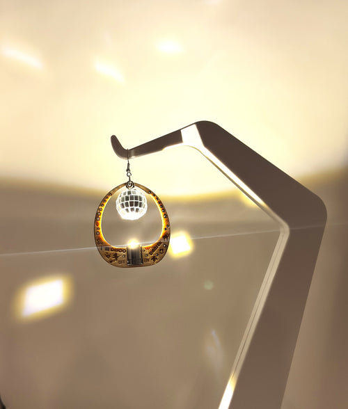 Disco Light Earrings – Light-Up Wooden Party Earrings – Funny Disco Jewelry – Festival & Night Party Accessory